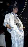 Bluetiek-in modeshow. Oversized broeken met opgerolde pijpen , pumps en veel hairgel.
