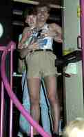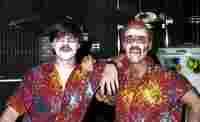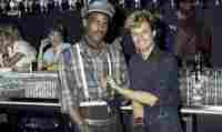 Bluetiek-in. Eigenaar Dik Beekman en huis-dj Peter Slaghuis achter de draaitafels.
