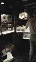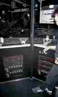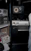 Bluetiek-in. Ruimte waaruit de diskjockey opereert nog met vinyl en sporenbanden.