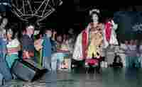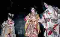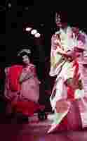 In het kader van de zomermanifestatie Japan in Rotterdam lopen in de discotheek BlueTiek-in historische Japanse figuren op de catwalk annex dansvloer. Juli-augustus 1984.