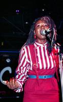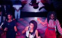 De Nederlandse discogroep Mai Tai treedt op in de Rotterdamse discotheek BlueTiek-in. Mai Tai bestond toentertijd uit Jetty Weels, Mildred Douglas (op foto) en Carolien de Windt.