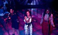 De Nederlandse discogroep Mai Tai treedt op in de Rotterdamse discotheek BlueTiek-in. Mai Tai bestond toentertijd uit (vlnr) Mildred Douglas, Carolien de Windt en Jetty Weels.