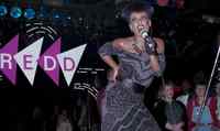 De Amerikaanse zangeres Sharon Redd treedt op in de Rotterdamse discotheek BlueTiek-in, 19 januari 1984.