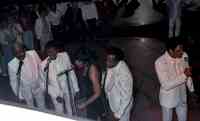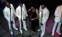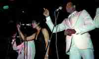 Een optreden van The Platters in de Rotterdamse discotheek BlueTiek-in. The Platters, een Amerikaanse Rythm-and-bluesgroep [RnB], bestaan sinds 1952. Ten tijde van dit optreden bestaat de band uit vier in smetteloos witte glimmende pakken gestoken zangers en een zangeres gekleed in een halterjurk van zwarte glitterstof.