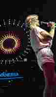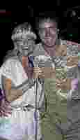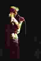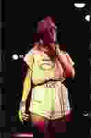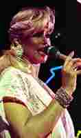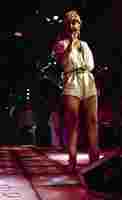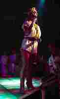 Nederlandse zangeres Vanessa treedt op in de Rotterdamse discotheek BlueTiek-in. Zij valt in omdat de Amerikaanse zangeres Eartha Kitt in Duitsland ziek is geworden. Vanessa draagt een jumpsuit met korte pijpen. In haar 'big hair' draagt zij over haar voorhoofd een gedraaide sjaal, 5 juli 1984.