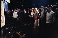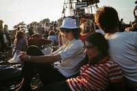 Kleurenfoto van close-up van een aantal bezoekers in het publiek