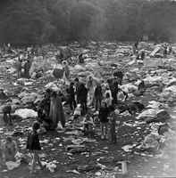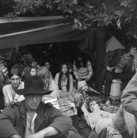 Een veld vol festivalgangers tijdens het Holland Pop Festival