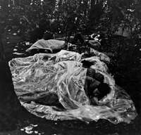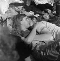 Close-up van een op de grond liggend stel tijdens het Holland Pop Festival