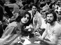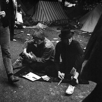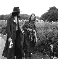 Een stel zorgt voor bekertjes drank tijdens het festival