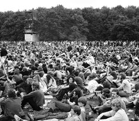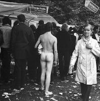 Een enkeling waagt zich naakt bij de stand van Het Vrije Volk