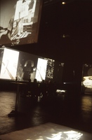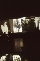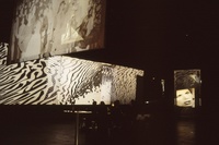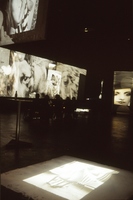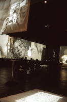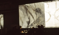 De fotografiestudenten projecteerden beelden op dwars door de hal gespannen doeken.