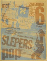 Poster voor Sleperspop, solidariteits Festival met optredens van Iskus, Armand, Herman de Wit combo, Amankay, Bolus, Fandango, Gilius Haagse hofje, Alakondre, Barend Peterse, Kladderadatch, solidair met de stakende sleepboot bemanningen, van 12 tot 12 in Utopia Watertoren.
