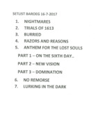 Eerste bladzijde van de setlist van Marky Ramone's Blitzkrieg op 3 augustus 2019