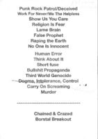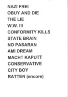 Tweede bladzijde van de setlist van Marky Ramone's Blitzkrieg op 3 augustus 2019