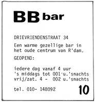 BB Bar zat aan de Drievriendenstraat 34. Shows all the weekend.