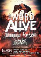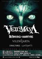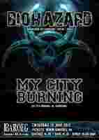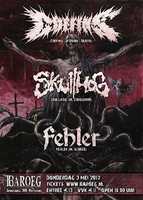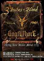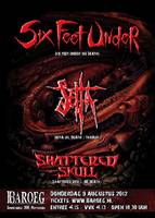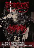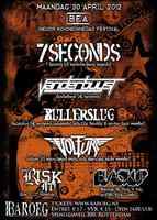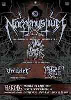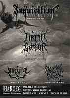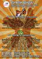 Tekst in witte fantasieletters met de naam van het event, de namen van bands en details m.b.t. venue, tijd en prijs.