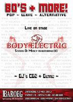 Rood logo met twee vervaagde handen en een hoofd met rode lijnen en figuren: Body Electric