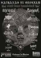 Kleuren afbeelding. De poster is omkaderd door een veelvoud van demonen. Daarbinnen uitzicht op een fantasiewereld met puntige bergpieken, waarin onder meer een geraamte is verwerkt.